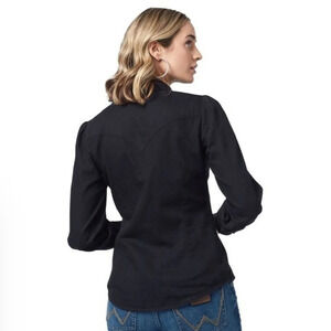 Wrangler Women's Retro Punchy Long Sleeve Western Rodeo Denim Shirt in Black