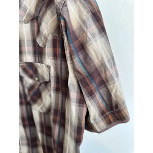 Wrangler Retro Brown Short Sleeve Pearl-Snap Western Shirt Size XL