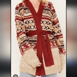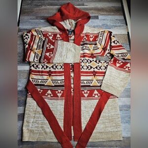 Wrangler Retro Cardigan With Hood Belt Size Large Oatmeal Aztec Print Western
