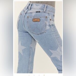 Wrangler Retro Light Wash Mae Mid Rise Star Print Flare Jeans size 32/13x36 new