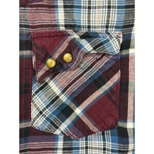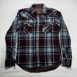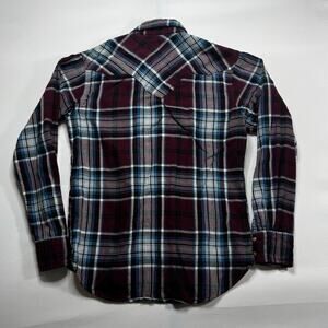 Wrangler Retro Men's Long Sleeve Maroon Plaid Flannel Pearl Snap Shirt - Size M