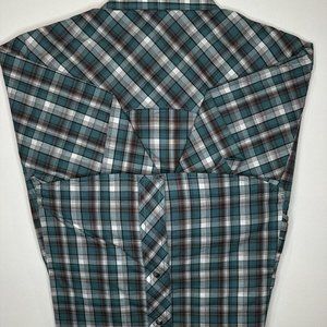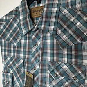 Wrangler Retro Mens Pearl Snap Shirt Long Sleeve Size Large NWT New Plaid Teal