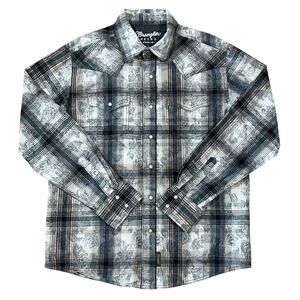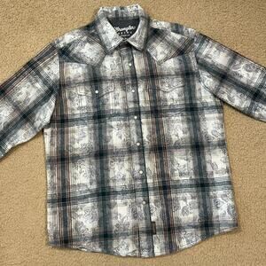 Wrangler Retro Mens Western Pearl Snap Paisley Long Sleeve Shirt Size Large