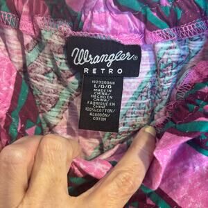 Wrangler Retro Off the Shoulder Short Sleeve Ruffle Crop Elastic Waist Shirt L