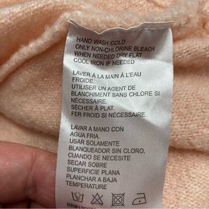 Elevate your winter wardrobe with this charming Wrangler Retro oversized sweater, a cozy essential for chilly days. Crafted in a soft peach hue, this sweater exudes warmth and comfort. The distinctive cowl neck features a delightful pattern detail, adding a touch of visual interest to the neckline. With its oversized drop-shoulder style, this sweater offers a relaxed and effortlessly chic silhouette. The sleeves are adorned with tie details at the cuffs, allowing for a customizable fit and adding a playful element to the design. Boasting a fuzzy appearance, this sweater provides both style and coziness. Crafted from a blend of 74% acrylic, 23% nylon, and 3% spandex, it offers a balance of warmth and stretch for all-day comfort. Hand washing and flat drying are recommended to maintain its quality.