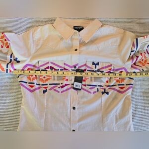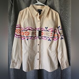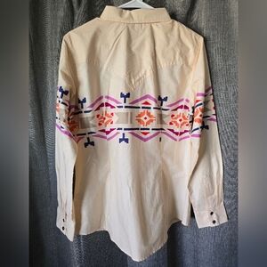 Wrangler Retro Peach Aztec Long Slv Pearl Snap Womens L NWT