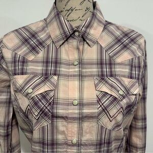 Wrangler Retro Pearl Snap Purple Plaid Long Sleeve Shirt Womens Size Small