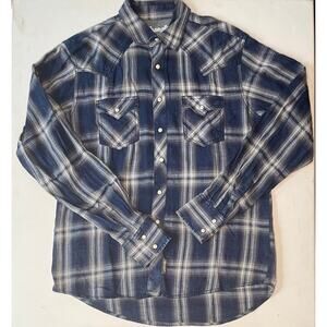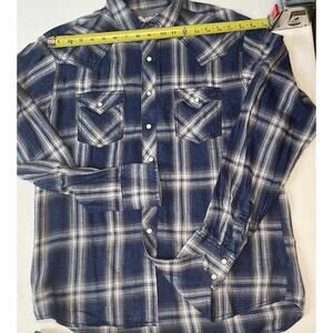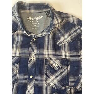 Wrangler Retro Premium Western Shirt M Blue Plaid Pearl Snap Cowboy Vintage Look