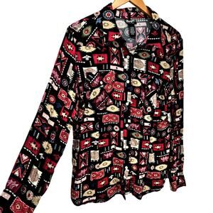 Wrangler Retro Shirt Womens XL Pearl Snap Long Sleeve Southwestern Aztec Blouse