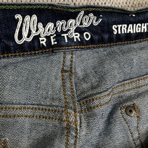 Wrangler Retro Slim Straight Jeans Mens 38X34 Blue Dark Wash Cowboy Western