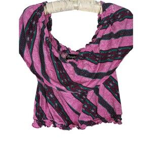 Wrangler Retro Sz L Women's Pink Candy Stripe Off Shoulder Ruffle Trim Blouse