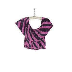 Wrangler Retro Sz L Women's Pink Candy Stripe Off Shoulder Ruffle Trim Crop Top