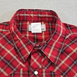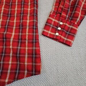 Wrangler Retro Western Shirt Men's XL Red Plaid Pearl Snap Cowboy Sawtooth EUC