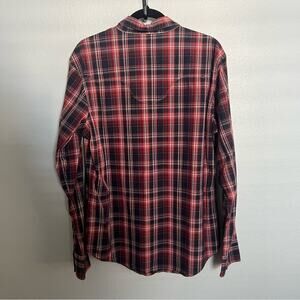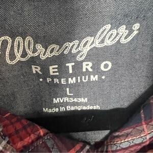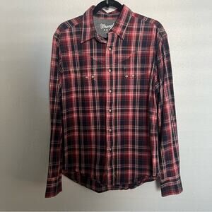 Wrangler Retro Western Shirt Red Blue Plaid Pearl Snap Button Long Sleeve size L