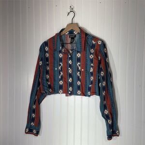 Wrangler Retro Western Shirt XXL Custom Crop Aztec Stripe Cotton Rodeo Grunge
