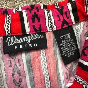 Wrangler Retro Womens Size L Red Long Sleeve Aztec Pearl Snap Top