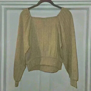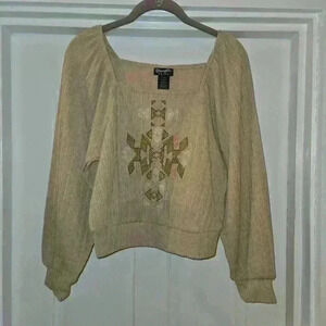 Wrangler Retro Womens Square Neck Embroidered Balloon Sleeve Top Tan Size Small