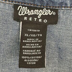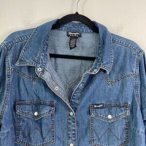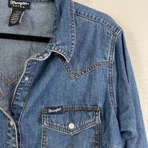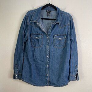 Wrangler Retro Womens XL Blue Denim Western Shirt Pearl Snap Up Chambray Top