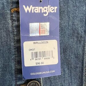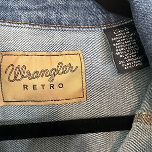 Wrangler Retro OSU Jean Jacket. Oklahoma State Cowboys. Denim Jacket. Women's. Size Large. Trucker Jacket. Embroidery on collar and back. Retail price for jacket is $96. 98% cotton 2% spandex. Length from shoulder to bottom is 22”. Armpit to armpit is the 22”. Sleeve length 24”.