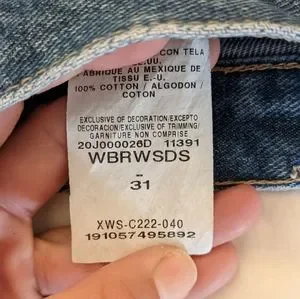 size 31 wrangler shorts. nothing wrong with them, just a bit big on me.