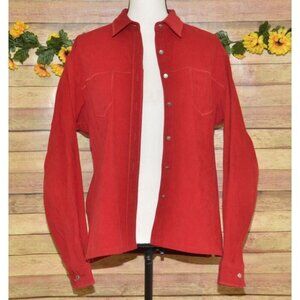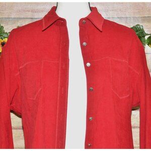 Wrangler Riata Ladies L Red Heavy Shirt Shacket Button Front Western Cowgirl