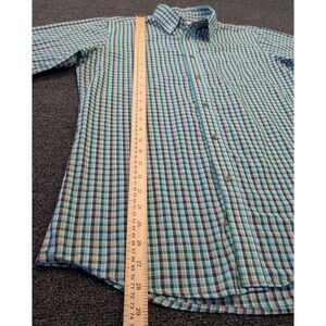 The Wrangler Riata Shirt for Men in XXL size features a classic blue plaid pattern with a collared neckline and button closure, making it a stylish and versatile addition to any casual wardrobe. Made from a comfortable blend of polyester and cotton, this short sleeve shirt is machine washable for easy care. With a regular fit and accents like pockets and breathability, this button-up shirt from the Wrangler Riata product line is perfect for those who appreciate a Western, cowboy theme in their clothing choices. A10 0395