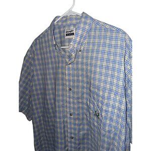 Wrangler Riata blue and yellow plaid short sleeve button up shirt size L