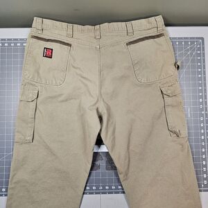 Wrangler Riggs Ripstop Canvas double-knee cargo pants men's 44x34 in bride. There's 3 fade spots on the front pocket area. See pictures. 2594