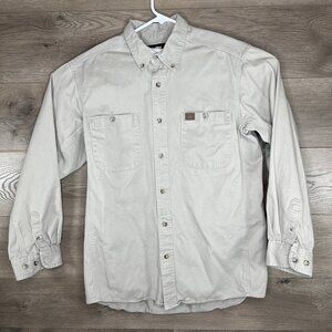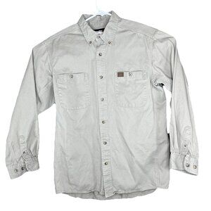 Wrangler Riggs Workwear Button Down Shirt Mens Large Button Up Pocket Toupe Khaki