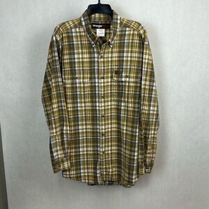 Wrangler Riggs Workwear Button Down Shirt Long Sleeve Sz XXL Yellow Gray Plaid