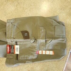 These pants are brang new in perfect condition with tags. they are green wrangler Riggs Workwear Ranger pants in green. The only reason I am selling them is because my dad bought them and they were to big. They are 40x36.