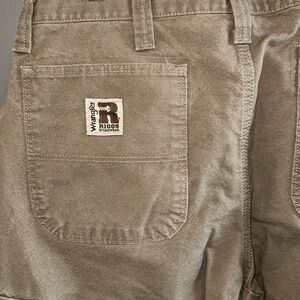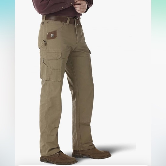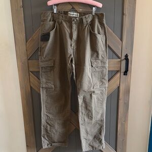 Mens Wrangler workwear Ranger pants in the color bark. They are a grayish brown shade. Brand new, never worn!
