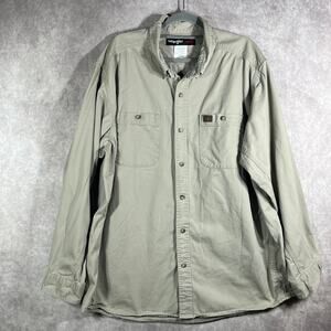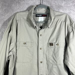 Wrangler Riggs Workwear Shirt Mens Size 2XL Tan Twill Button Down Long Sleeves Work Outdoor