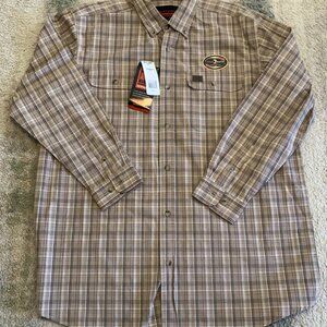 Wrangler Riggs Workwear Shirt Men's XL Tan Plaid Long Sleeve