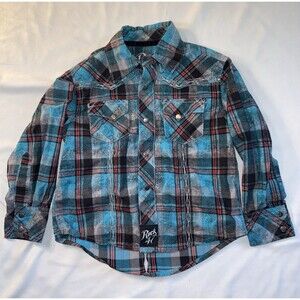 Wrangler Rock 47 Boys Size XS, Snap LS Shirt, Blue, RN130273