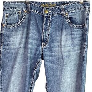 Wrangler Rock 47 Jeans Men 40X34 Blue Western Embroidery Bootcut Frayed Creased