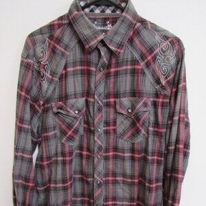 Wrangler Rock 47 Multicolor Plaid Long Sleeve Pearl Snap Western Shirt Large