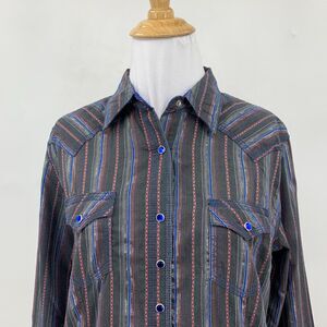 Wrangler Rock 47 Shirt Women M Medium Stripe Cotton Blend Rhinestone Snap Button