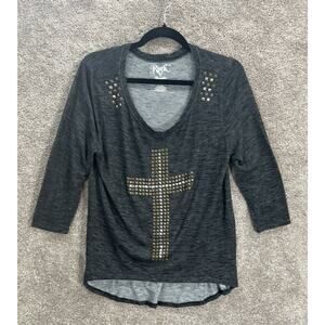 Wrangler Rock 47 Top Womens Medium Gray Embellished Hi Low Hem Tunic Blouse Boho