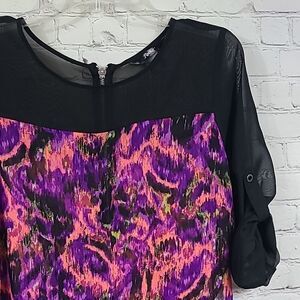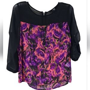 Wrangler Rock 47 Women's Sheer Western Blouse Colorful Roll Tab Sleeve Top