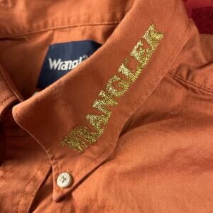 Wrangler Rodeo Shirt Mens XL Orange Embroidered Slv Collar Western Brushpopper
