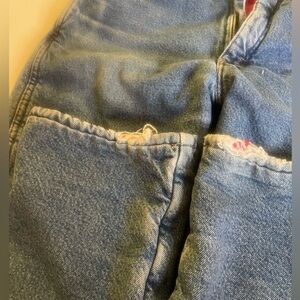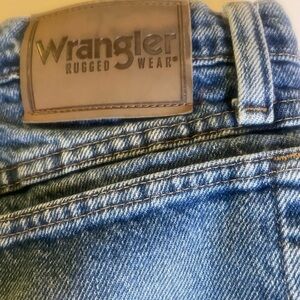 Experience comfort and style with these distressed Wrangler's Rugged-Wear thrashed jeans. Classic blue denim exterior and a red lining for insulation.