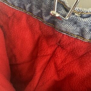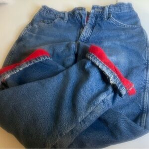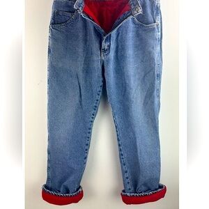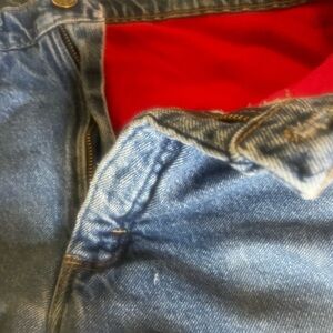 Experience comfort and style with these distressed Wrangler's Rugged-Wear thrashed jeans. Classic blue denim exterior and a red lining for insulation.
