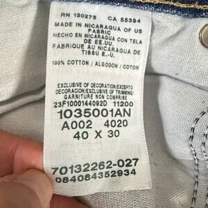 These Wrangler Rugged Wear men’s jeans are made from durable 100% cotton denim, proudly crafted in Nicaragua with US-sourced fabric. Featuring a classic relaxed fit, medium wash, and straight leg, these 40x30 jeans are perfect for workwear or everyday comfort. The iconic Wrangler patch and traditional 5-pocket design complete the vintage Americana look. Slight fade/wear on right leg adds character to this rugged pair. A reliable choice for casual wear, work settings, or Western-inspired outfits.