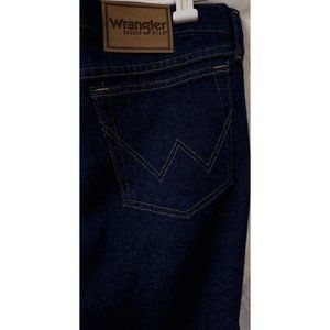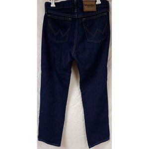 Brand & Description: Wrangler Rugged Wear Mens 30x30 Relaxed Fit Dark Wash Straight Leg Western Jeans.