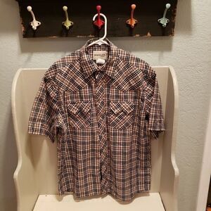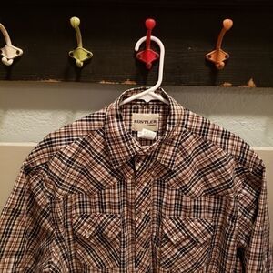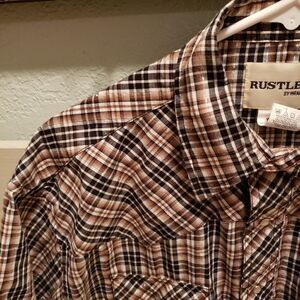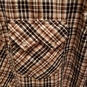 Wrangler Rustler Brown Plaid Metallic Pearl Snap