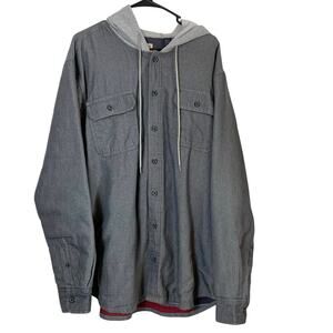 Wrangler Shacket Jacket Men L Gray Hooded Button Flannel Lined Work Outdoor