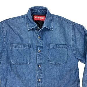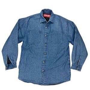 - Description: WRANGLER Quilt Lined Collared Shirt Mens S Blue Denim Button Up Classic Career