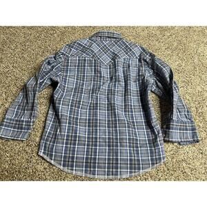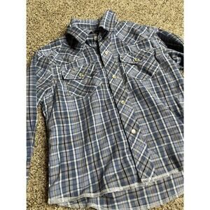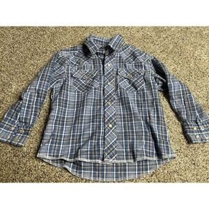 Wrangler Shirt Boys XXS (0-2) Western Pearl Snap Plaid Rodeo Blue Shirt