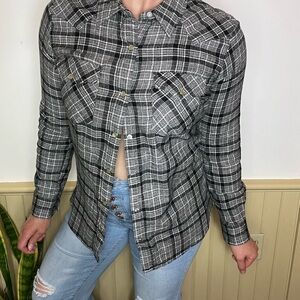 Wrangler Shirt Gray Long Sleeve Plaid Flannel Lightweight Women’s Sz M